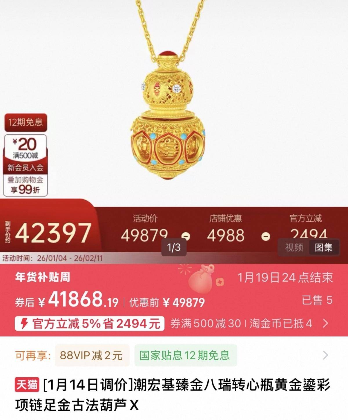 潮宏基天猫门店即将提前涨价。